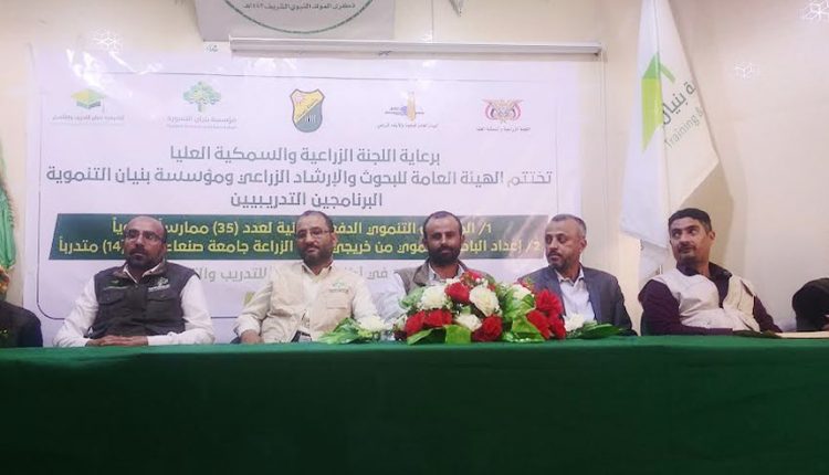 اُختتم في أكاديمية بنيان للتدريب والتأهيل بصنعاء، اليوم، برنامجا الممارس التنموي الدفعة الثانية وإعداد الباحث التنموي، نظمتهما مؤسسة بنيان التنموية والهيئة العامة للبحوث والإرشاد الزراعي.
