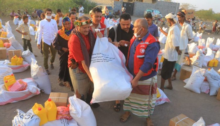 يمانيون – وزع فرع المجلس الأعلى لإدارة وتنسيق الشؤون الإنسانية والتعاون الدولي بمحافظة الحديدة اليوم 130 سلة غذائية على الأسر المتضررة جراء العدوان بمنطقة كيلو 16 وما جاورها بدعم فرع جمعية الهلال الأحمر اليمني.