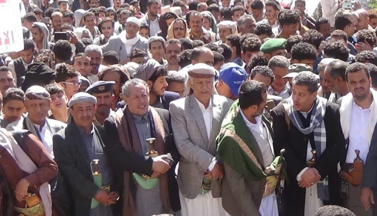 أًقيم في مدينة إب، اليوم، مهرجان جماهيري حاشد تحت شعار “أمريكا وراء التصعيد العسكري والاقتصادي واستمرار العدوان والحصار”.