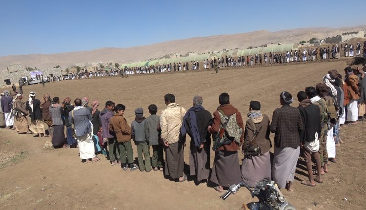 وقفة قبلية لأبناء مديرية الجبل في عمران تنديداً بانتهاكات العدوان