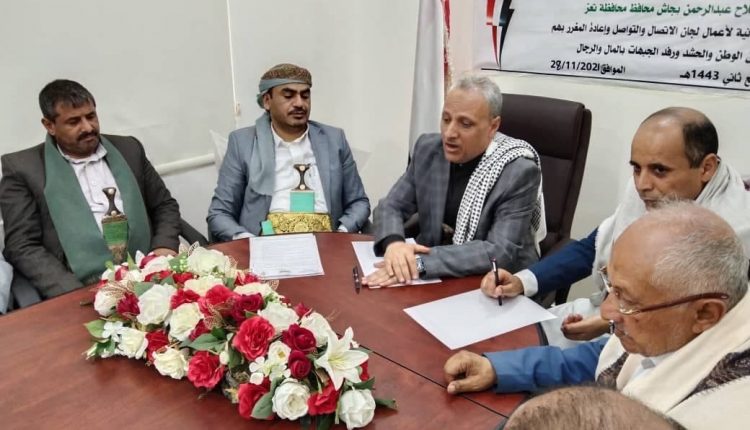 يمانيون – دشنت اليوم بمحافظة تعز المرحلة الثانية لأعمال لجان الاتصال والتواصل وإعادة المغرر بهم الى حضن الوطن والحشد ورفد الجبهات بالمال والرجال برئاسة نائب رئيس الوزراء لشئون الرؤية الوطنية الدكتور محمود الجنيد ومحافظ تعز صلاح عبد الرحمن بجاش وبحضور مشرف عام المحافظة عبدالله النواري وعدد من اعضاء مجلسي النواب والشورى والقيادات العسكرية والأمنية ووكلاء المحافظة تنفيذا لتوجيهات قائد الثورة حفظه الله وبرعاية رئيس المجلس السياسي الأعلى المشير الركن مهدي المشاط.
