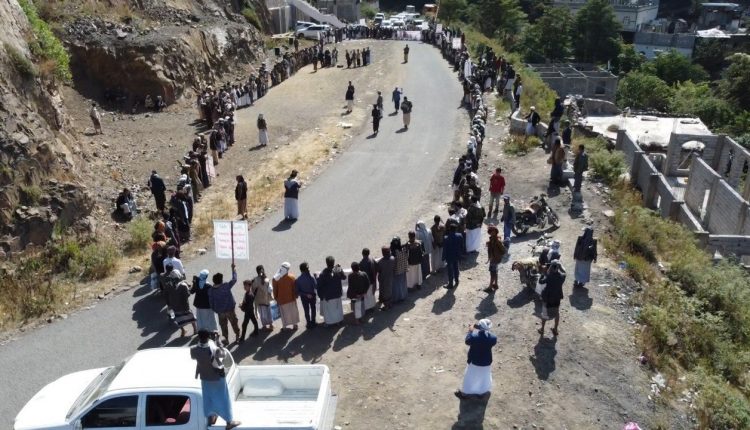 وقفة مسلحة لأبناء مذيخرة في إب اعلانا للنفير لمواجهة تصعيد العدوان