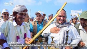 وخلال الحفل الذي أقيم على ساحل الكورنيش وملعب الكرة بمدينة الحديدة ، بحضور وكلاء المحافظات الثلاث ومفتي اليمن شمس الدين شرف الدين ورئيس الهيئة العامة للزكاة شمسان أبو نشطان.. بارك محافظ الحديدة محمد عياش قحيم للعرسان بهذا العرس الكبير، الذي يتزامن مع الإحتفالات بالذكرى السنوية للشهيد والانتصارات العظيمة التي تحققت لمحافظة الحديدة ومارب وغيرها من الجبهات بالإضافة إلى ضرب قوى العدوان في عقر دارهم.