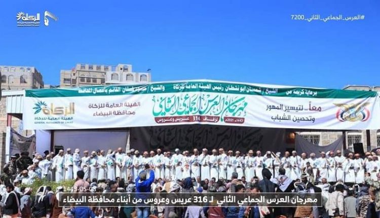 احتفى 316 عريساً وعروساً من أبناء محافظة البيضاء بزفافهم في عرس جماعي، نظمه مكتب الهيئة العامة للزكاة بالمحافظة.