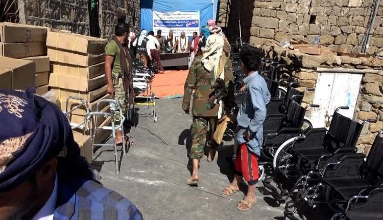 دشن فرع صندوق رعاية وتأهيل المعاقين بمحافظة ريمة، اليوم الأحد، المرحلة السابعة لتوزيع المستلزمات والأجهزة للأشخاص ذوي الاعاقة بمديرية كسمة.