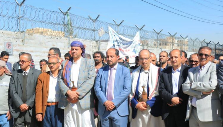 وقفة احتجاجية لكهرباء الأمانة وشركة النفط تنديداً باستمرار العدوان والقرصنة على سفن الوقود