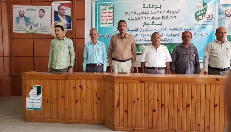 نظم مكتب التعليم الفني والتدريب المهني والهيئة العامة لحماية البيئة والخدمة المدنية وصندوق تنمية المهارات والمعهد الوطني للعلوم الإدارية وكليات المجتمع بمحافظة الحديدة، اليوم فعالية خطابية وثقافية بذكرى سنوية الشهيد.