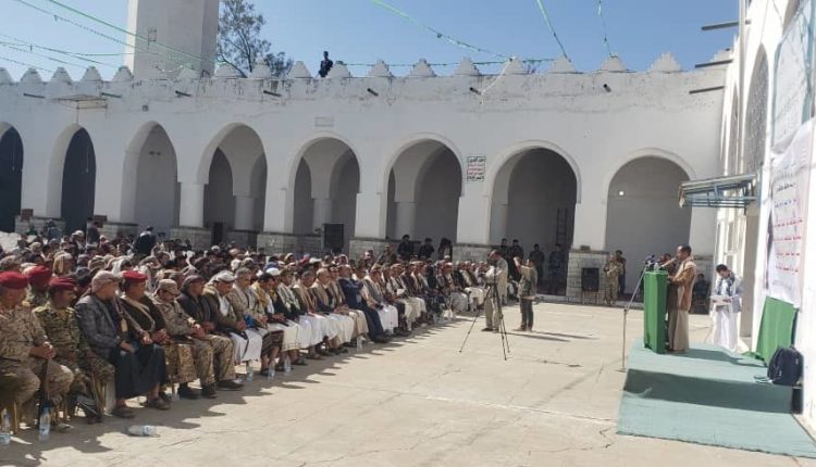 كلمة المشايخ والوجهاء التي ألقاها سعد قريش، أكدت أن أي تصعيد لقوى العدوان سيواجه بالتصعيد من قبل أبطال الجيش واللجان الشعبية وأحرار اليمن.