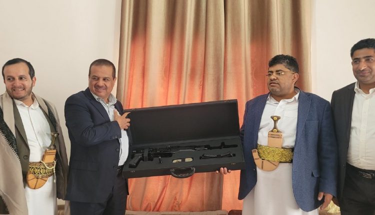 يمانيون- تسلم عضو المجلس السياسي الاعلى محمد علي الحوثي اليوم الاثنين سلاح ناري صناعة يمنية 100% جاءه هدية من التصنيع الحربي اليمني.