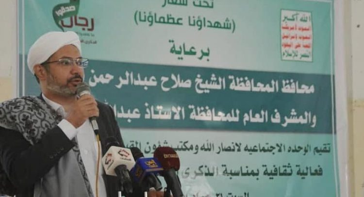 نظمت الوحدة الاجتماعية لأنصار الله ومكتب شؤون القبائل والتلاحم القبلي اليوم السبت ، فعالية ثقافية خطابية بمناسبة الذكرى السنوية للشهيد.