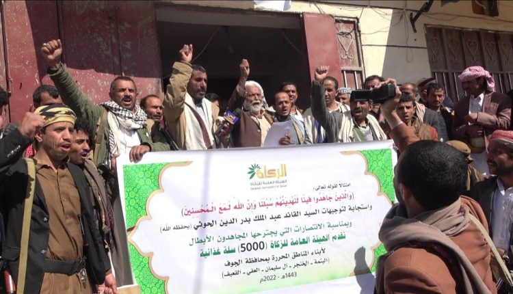 تزامناً مع تحريرها.. الزكاة توزع سلال غذائية لأبناء المناطق المحررة في الجوف