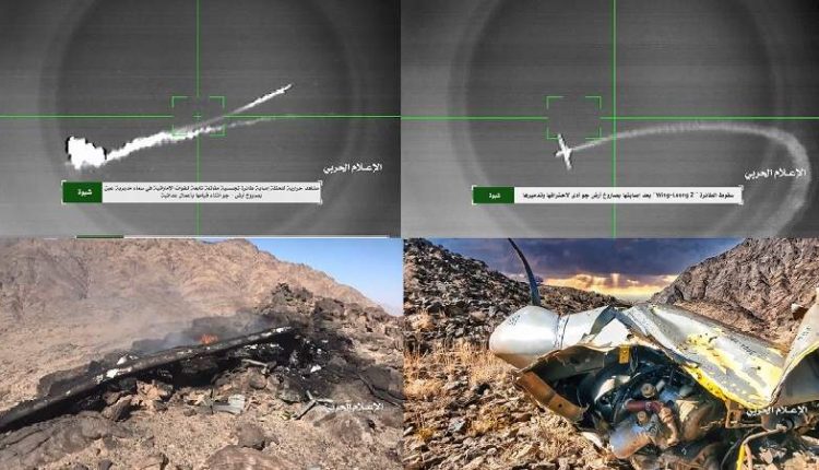 وكان متحدث القوات المسلحة العميد يحيى سريع قد أعلن أمس الأول عن إسقاط طائرة تجسسية مسلحة نوع “وينغ لونغ2” صينية الصنع تابعة لسلاح الجو الإماراتي، وذلك أثناء قيامها بأعمال عدائية في أجواء مديرية عين بمحافظة شبوة، مشيرا إلى أن عملية إسقاط الطائرة تمت بصاروخ أرض جو محلي الصنع.