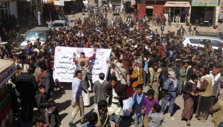 وخلال المسيرات ندد المشاركون بالمجازر الوحشية التي يرتكبها العدوان بشكل يومي والحصار الخانق ومواصلة احتجازه للمشتقات النفطية، مؤكدين مباركتهم لعمليات إعصار اليمن التي استهدفت العمقين السعودي والأماراتي.. مطالبين بالمزيد من الضربات الرادعة والمنكلة بالأعداء.