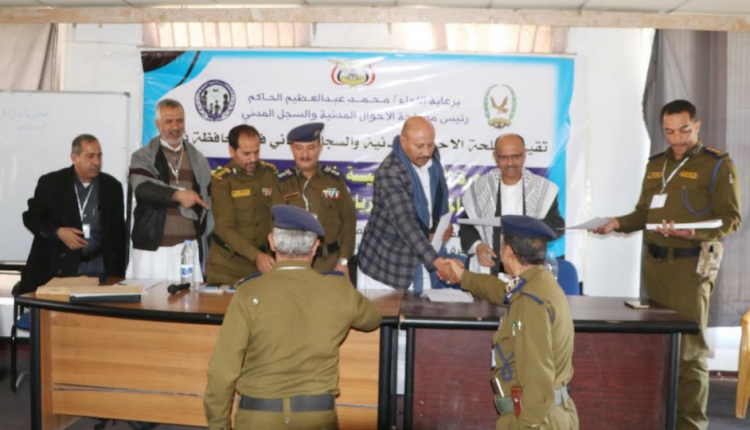 اختتمت في فرع مصلحة الأحوال المدنية بمحافظة ذمار اليوم، دورة تدريبية في السجل المدني والتحريات وفحص الوثائق والأرشفة، بمشاركة 80 متدربا ومتدربة من منتسبي الأحوال المدنية وفروعه بالمديريات.
