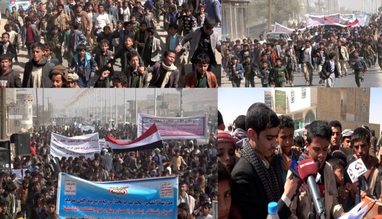 نظمت السلطة المحلية ومكتب الربية ومعلمي وطلاب عزلة الربع الشرقي بمديرية الجبل محافظة عمران مسيرة ووقفة حاشدة بمناسبة ذكرى جمعة رجب، وتنديدا باستمرار العدوان والحصار. والتصعيد العسكري الامريكي.