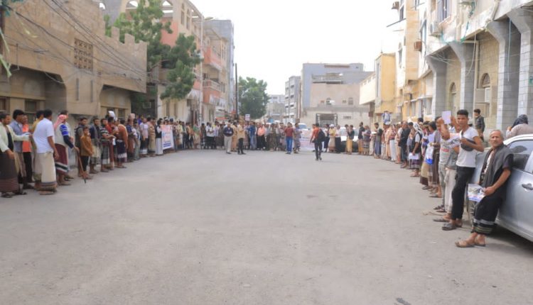 وأدان بيان صادر عن الوقفة التي حضرها وكلاء المحافظة محمد حليصي وعبدالجبار أحمد ومدير مكتب هيئة النقل بالمحافظة محمد السويدي، ونائبه نعمان الدرواني استمرار تحالف العدوان في قصف الأحياء السكنية.. محملا الأمم المتحدة ومجلس الأمن الدولي المسؤولية عن ما يتعرض له الشعب اليمني من جرائم ومعاناة جراء توقف الخدمات نتيجة منع دخول المشتقات النفطية.