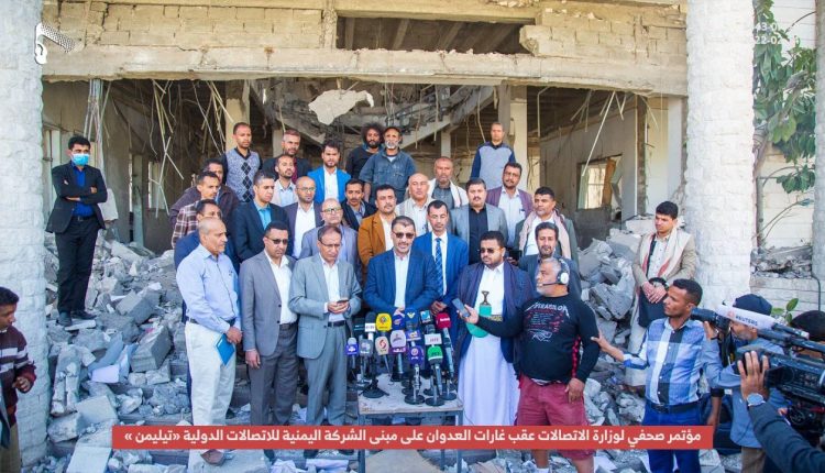 وأوضح البيان أنه نتج عن استهداف مبنى تيليمن تدمير كلي لكافة التجهيزات الفنية والمبنى، وترتب عليه انقطاع خدمات الاتصالات الدولية، مشيرة إلى تأثر العديد من الخدمات والقطاعات الحيوية في كافة مناطق الجمهورية اليمنية وحرمان المواطنين من أحد حقوقهم الأساسية.