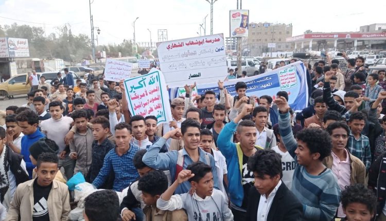 مسيرة طلابية في تعز تدين جرائم وتصعيد العدوان