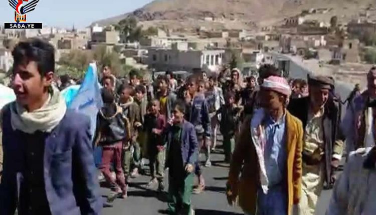 ودعا بيان المسيرة التي حضرها مدير التربية بالمديرية مطهر الزوار وعدد من قيادات المكتب التنفيذي ومكتب التربية وشخصيات اجتماعية، إلى فضح جرائم العدوان بكل الطرق والوسائل، والاستمرار في تعزيز الصمود والثبات ورفد الجبهات حتى تحقيق النصر.