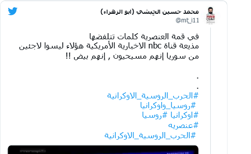 وقالت مراسلة أخرى أيضا تعمل لصالح “أن بي سي”، “بصراحة هؤلاء ليسوا لاجئين من سوريا، هؤلاء من أوكرانيا المجاورة، هؤلاء مسيحيون، إنهم بيض، إنهم يشبهون الأشخاص الذين يعيشون في بولندا”.