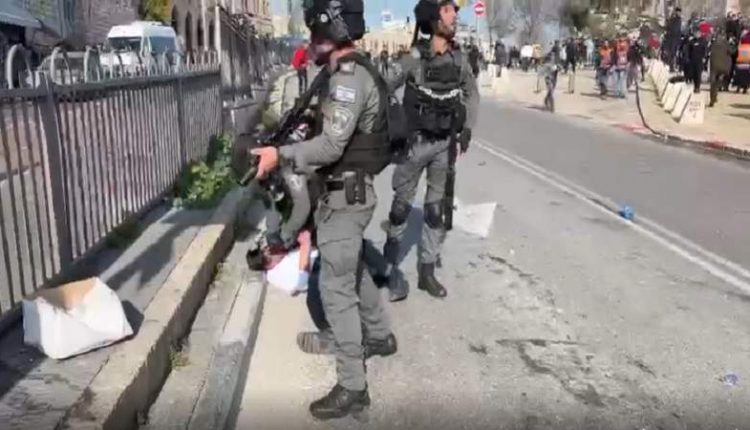 واعتدت قوات الاحتلال، ظهر اليوم، على الفلسطينيين المحتفلين بذكرى الإسراء في ساحة باب العامود.