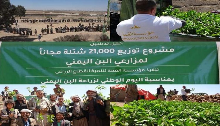 دشنت جمعية الرواد التنموية في مديرية الحيمة الداخلية محافظة صنعاء بالتعاون مع مكتب الزراعة والري، توزيع 21 ألف شتلة بُن للمزارعين في في مديريات الحيمتين الداخلية والخارجية وحراز مقدمة من مؤسسة القمة، لتنمية القطاع الزراعي.