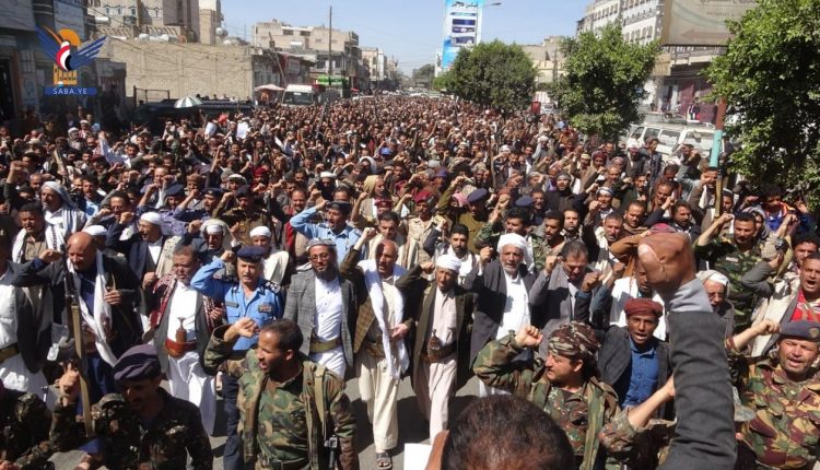 وأكد بيان صادر عن المسيرة تلاه وكيل المحافظة عباس العمدي، أن العدوان على اليمن أمريكي يستهدف كافة أبناء الشعب اليمني ومواجهته واجب من خلال النفير العام للجبهات.