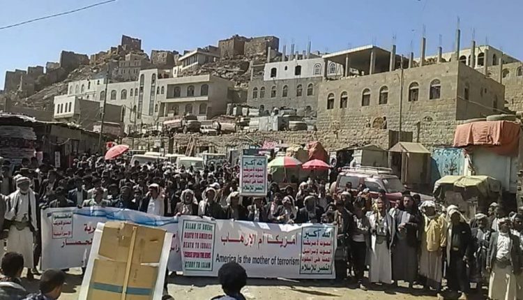 حجة .. مسيرة حاشدة في كحلان الشرف دعماً لحملة إعصار اليمن