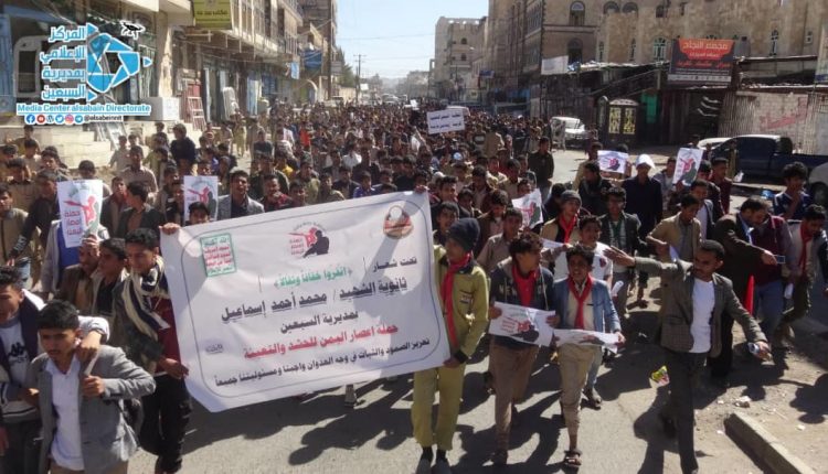 مسيرة طلابية بمديرية السبعين للتنديد بالحصار الأمريكي