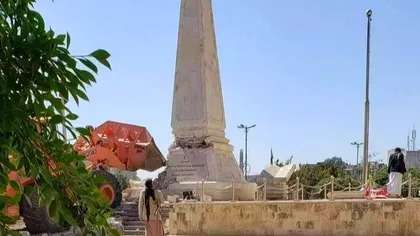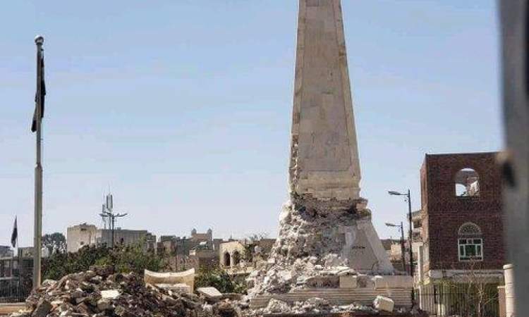 وتداول ناشطون على مواقع التواصل الإجتماعي صورا لجرافة تابعة لمكتب أشغال الأمانة وهي تقوم بهدم النصب التركي (المسلة الفرعونية) الذي نصبه حزب الإصلاح بعد وصولهم السلطة في العام 2011م كتخليد للدور العثماني في احتلال اليمن.