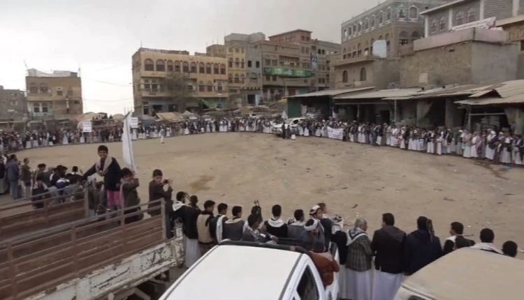 نظم أبناء بني أسد حجر مديرية المحابشة محافظة حجة وقفة في إطار دعم حملة إعصار اليمن للتحشيد والاستنفار.