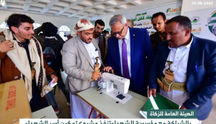 وعبّر رئيس الوزراء، لدى مشاركته تدشين مشروع تمكين أسر الشهداء في مجال الخياطة لـ200 أسرة موزّعة على سبع محافظات تموله الهيئة العامة للزكاة بالشراكة مع مؤسسة الشهداء تحت شعار “الوفاء لأهل الوفاء”، عن الشكر لهيئة الزكاة ومؤسسة الشهداء على هذا النشاط، وغيره من الأنشطة القيمة، ولكل من يعمل في هذا المسار الذي يُعد من الأعمال المحسوبة وطنياً وأخلاقياً وإنسانياً.
