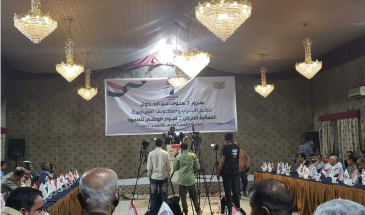 واعتبر بيان صادر عن اجتماع الأحزاب والمكونات السياسية اليوم الوطني للصمود يوم الانتصار والمضي نحو بناء الدولة اليمنية القوية القادرة على الحفاظ على سيادة الوطن واستقلاله، وحماية مقدراته.. داعياً إلى الاحتشاد المهيب في كافة الساحات يوم السبت المقبل (26 مارس)، لإحياء يوم الصمود الوطني.