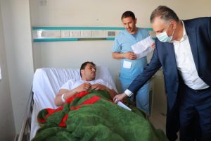 و عبر زباره عن التقدير لإدارات المستشفيات ومراكز رعاية الجرحى والكوادر الطبية والإدارية على جهودهم وما يقدمونه من خدمات طبية وعلاجية ورعاية واهتمام بالجرحى والمصابين.
