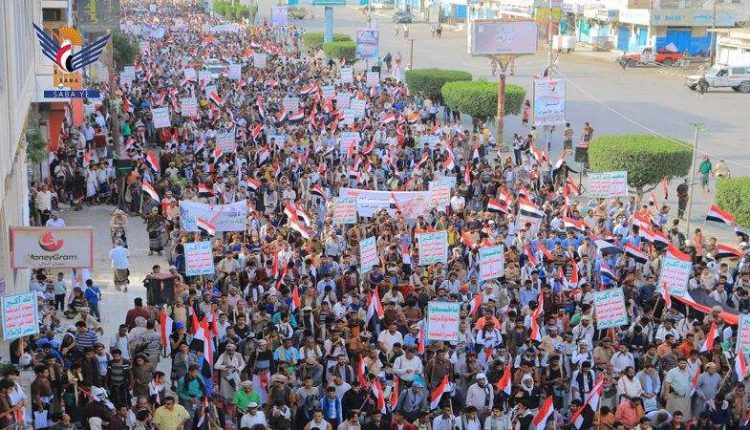 وندد المشاركون في المسيرة بتصعيد تحالف العدوان الأمريكي السعودي الإماراتي وما يفرضه من حصار واحتجاز لسفن المشتقات النفطية.