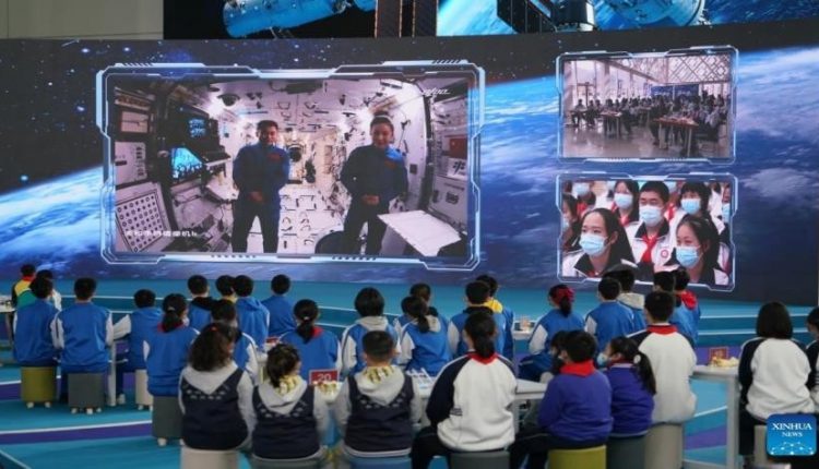 ألقى رواد فضاء صينيون محاضرة علوم مفتوحة، وهي الثانية التي تبثّ مباشرة من محطة الفضاء الصينية، لطلاب على الأرض.