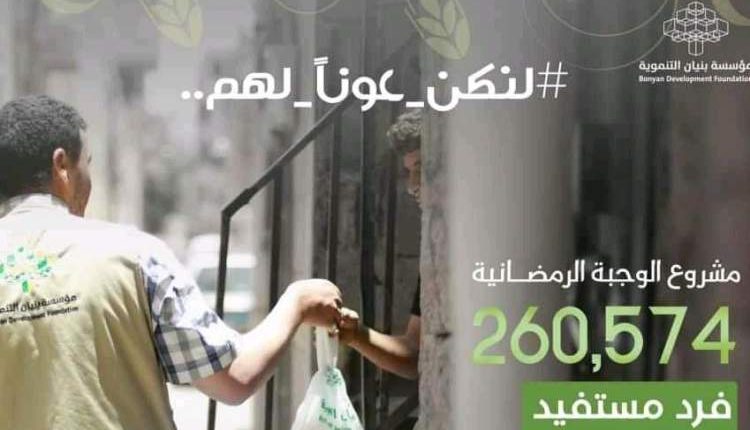 هذا ودعت مؤسسة بنيان التنموية للمساهمة في إطعام الأسر الأشد احتياجا عبر برنامج إطعام من خلال إرسال كلمة “إطعام” برسالة SMS إلى الرقم 5076 عبر مختلف شبكات الاتصالات المحلية.