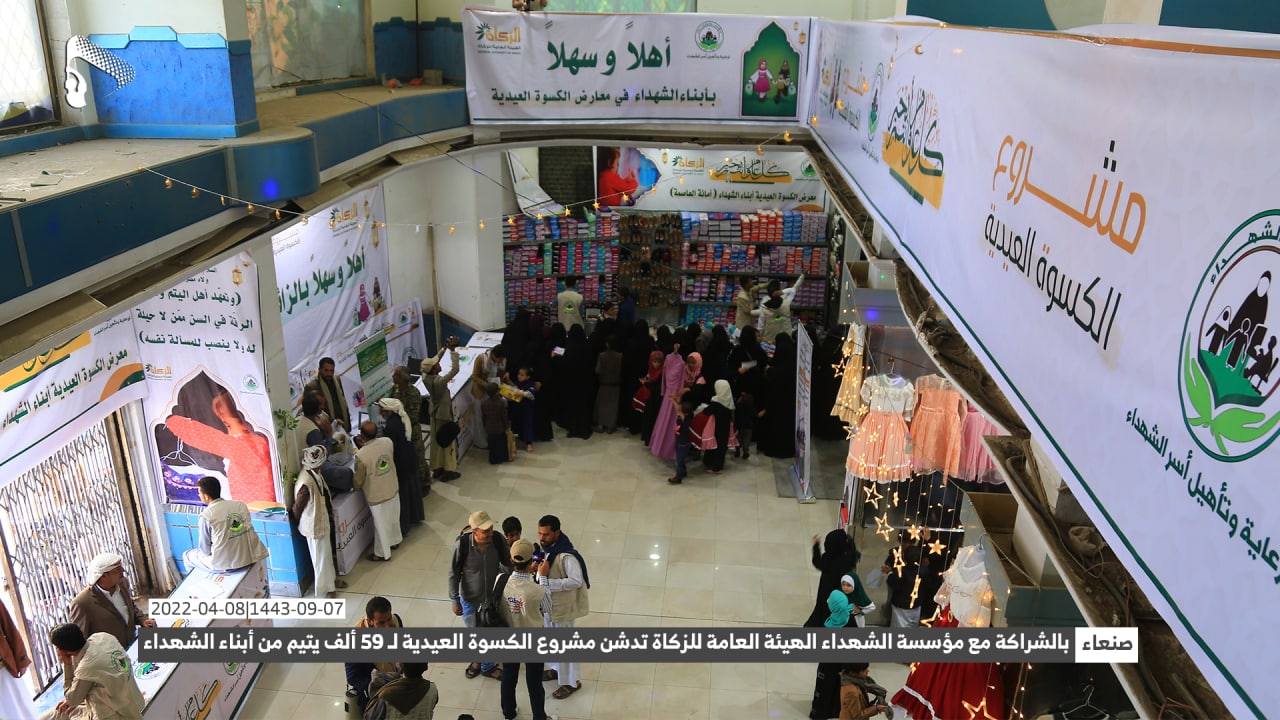 وفي التدشين بحضور مساعد وزير الدفاع للموارد البشرية اللواء الركن علي الكحلاني، ومحافظ صنعاء عبدالباسط الهادي، أشار رئيس الهيئة العامة للزكاة الشيخ شمسان أبو نشطان، إلى أن تدشين المعارض التي تقدم كسوة العيد لأبناء الشهداء بجميع المحافظات يأتي بالشراكة مع مؤسسة الشهداء.