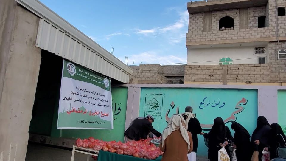 دشنت مؤسسة درب الإحسان الخيرية للتنمية وبالتعاون مع مستشفى الشهيد أبو حرب الملصي الخيري المطبخ الرمضاني الخيري، بمديرية سنحان محافظة صنعاء.