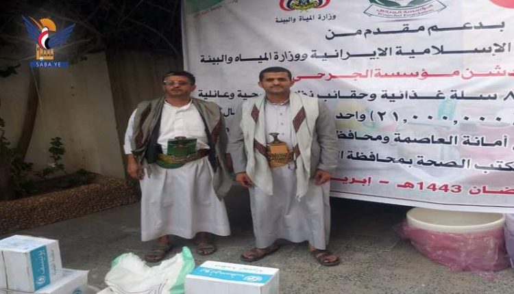 دشنت مؤسسة الجرحى بصنعاء اليوم الاثنين، مشروع توزيع السلال الغذائية والحقائب الصحية للجرحى في أمانة العاصمة و عدد من المحافظات بدعم من وزارة الإدارة المحلية وسفارة جمهورية ايران بصنعاء.