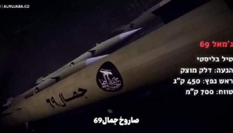 والصاروخ البالستي “جمال69” “يعمل بالوقود الجامد، ومداه 700 كم، ووزن رأسه الحربي 450 كجم” وفقاً لمقطع فيديو دعائي نشرته “النجباء” منذ قليل”