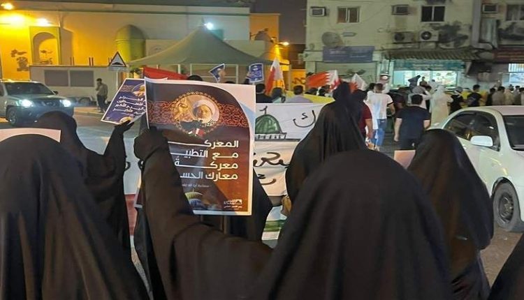 وشدد المتظاهرون على أن أهل البحرين وكلّ ذرّة تراب من بلدهم تتبرّأ من التطبيع والخيانة، وأنهم وفلسطين شعب واحد يتشاركون العداء لـ”إسرائيل”.