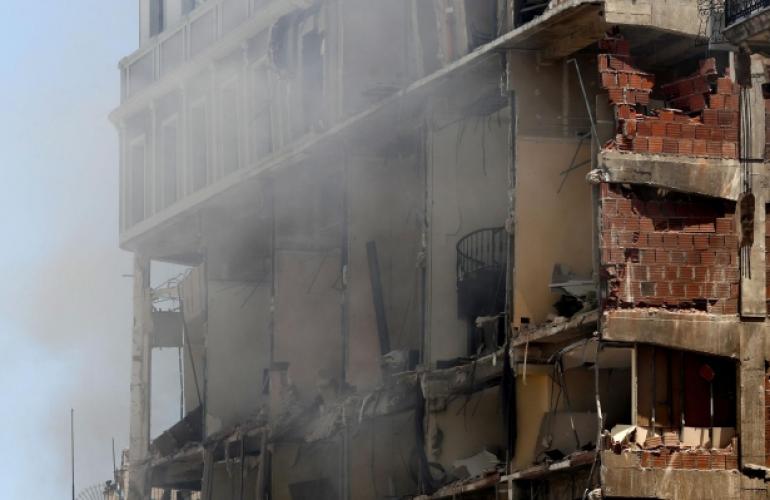 ووقع الانفجار نحو الساعة 11,00 (15,00 ت غ)، وأفاد شهود عيان أنّ الطبقات الأربع الأولى دمرت بالكامل، فيما تناثر الركام وقطع الزجاج على الأرض.