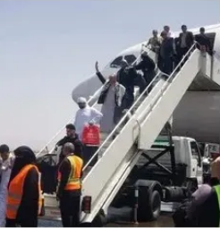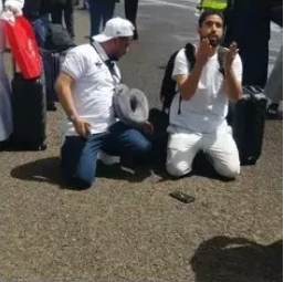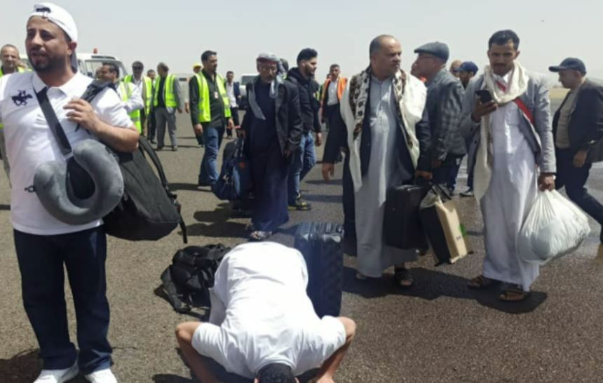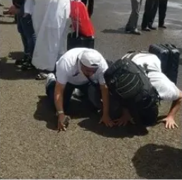 وأظهرت الصور سجود المسافرين على متن الطائرة فور وصولهم ارض الوطن.