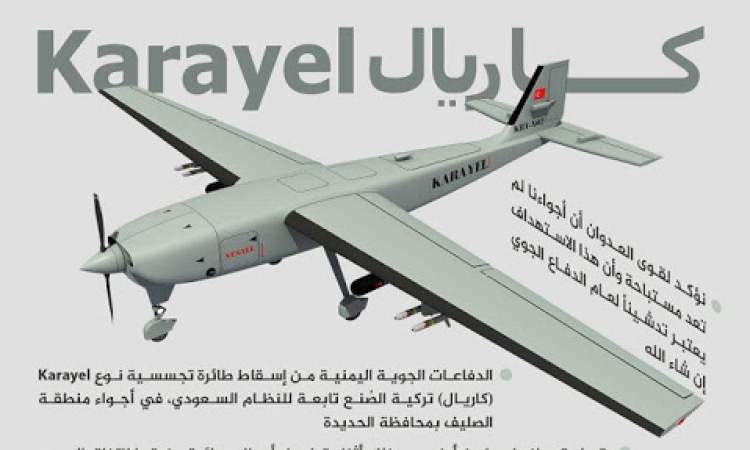 وقال ناطق القوات المسلحة اليمنية العميد يحيى سريع في بيان “تمكنت دفاعاتنا الجوية – بفضل الله – من إسقاط طائرة تجسسية مسلحة نوع كاريال تركية الصنع تابعة لسلاح الجو السعودي أثناء قيامها بخرق الهدنة وتنفيذ مهام عدائية في أجواء منطقة حيران في محافظة حجة صباح يومنا هذا”.