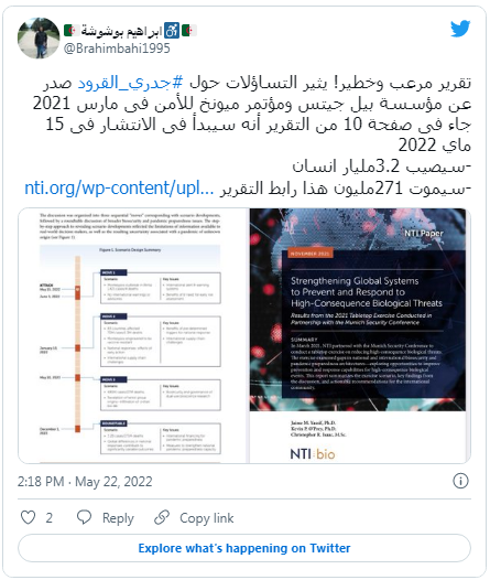 نظريّة المُؤامرة كانت حاضرة في تفسير ظُهور مرض الجدري، واستمرار رغبة جهة غامضة بالتخلّص من البشر، ويُذكّر البعض بالمختبرات البيولوجيّة التي عثرت عليها روسيا في أوكرانيا، والتي لعلها كما يقولون تُؤكّد نظريّة حرب الفيروسات كحرب بديلة عن احتلال الدول، وإسقاط أنظمتها.