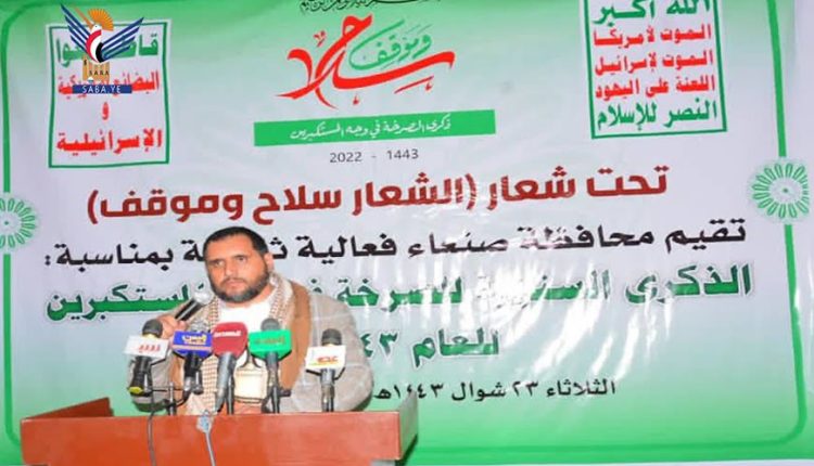 نظمت محافظة صنعاء، اليوم، فعالية خطابية إحياء للذكرى السنوية للصرخة في وجه المستكبرين.