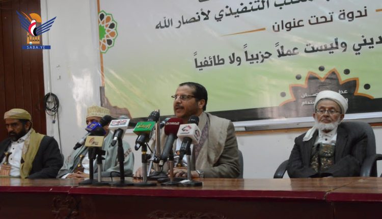 وفي الندوة، التي حضرها مدير دائرة العلماء والمتعلمين بالمكتب التنفيذي لأنصار الله علي جران، وكوكبة من العلماء والخطباء والمرشدين، قدّم رئيس ملتقى التصوف الإسلامي، العلامة عدنان الجنيد، ورقة علمية بعنوان “الصرخة شعار الأحرار”.