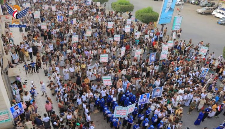 وفي المسيرة الحاشدة، التي تقدّمتها قيادة السلطة المحلية في المحافظة وشخصيات علمائية وتربوية وأكاديمية واجتماعية، رفع المشاركون هتافات البراءة من أعداء الأمة والدين من اليهود والنصارى والمنافقين.