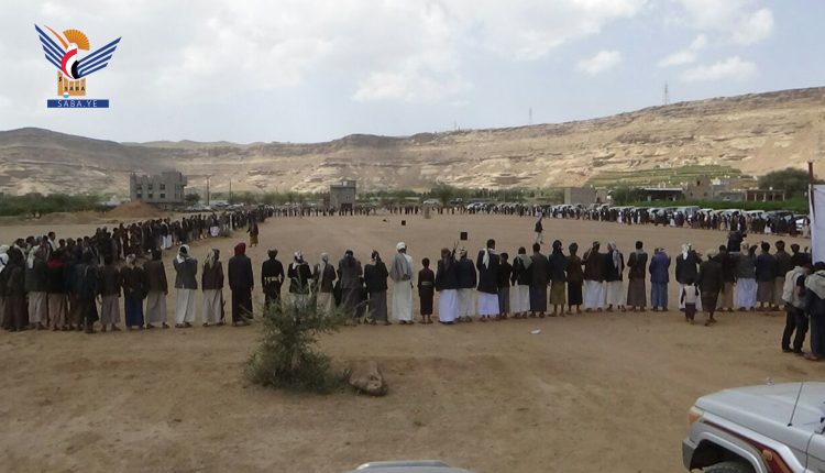 أبناء بني حشيش ينظمون وقفة احتجاجية تنديداً بالإساءة للرسول واستنكاراً لجريمة اغتصاب ست فتيات في حيس